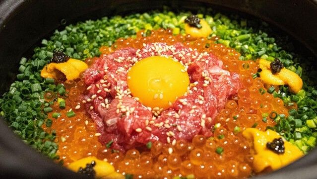 贅沢なひとときを楽しみ、至福の余韻に浸る、そんな特別な時間を演出します。店内の雰囲気を飾るのは、落ち着いた和のテイストです。洗練されつつも心地良さを感じる空間は、大切な人との食事に最適です。 当店のこだわりは、肉質を見極めて仕入れた最高級の和牛。上質な牛肉そのものの美味しさを味わっていただくために、部位それぞれの個性を引き出します。 王道のステーキをはじめ、厚切り牛タンや特上ハラミの味わいを心ゆくまでご堪能ください。
