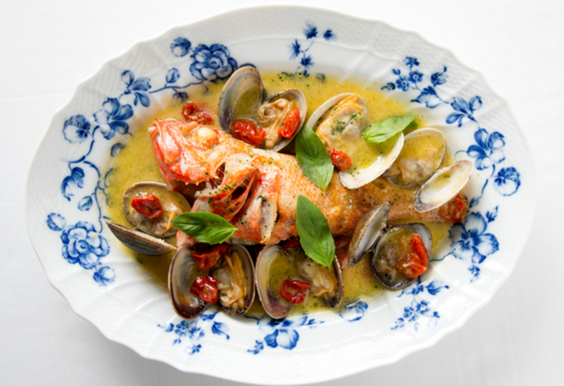 「ACQUA PAZZA」=「風変りな水」という意味です。 ふつふつと煮え狂う鍋の水を浴びながら、オリーブオイルにまみれた魚が煙をあげて旨味の頂点にのぼりつめる、 ダイナミックな料理法を、ぜひお召しあがりください。