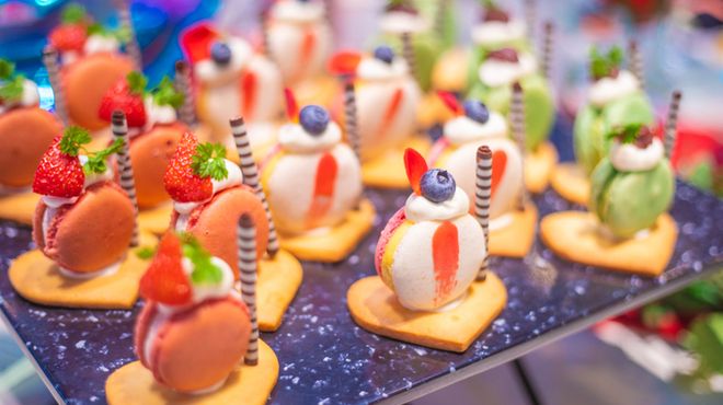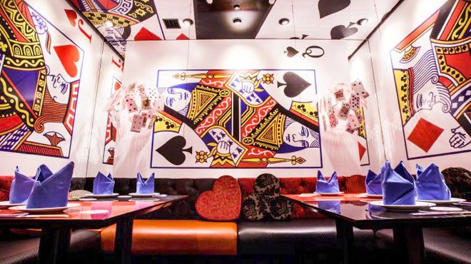 店内は「不思議の国のアリス」の世界観をベースにしており、物語に登場するキャラクターのモチーフを使ったユニークでカラフルな座席でお客様をお迎えいたします。イタリアンをベースとする創作メニューとオリジナルカクテルを提供しており、ランチのセットにはパスタやトーストにデザート付きです。特に誕生日や記念日には、コースがおススメです。