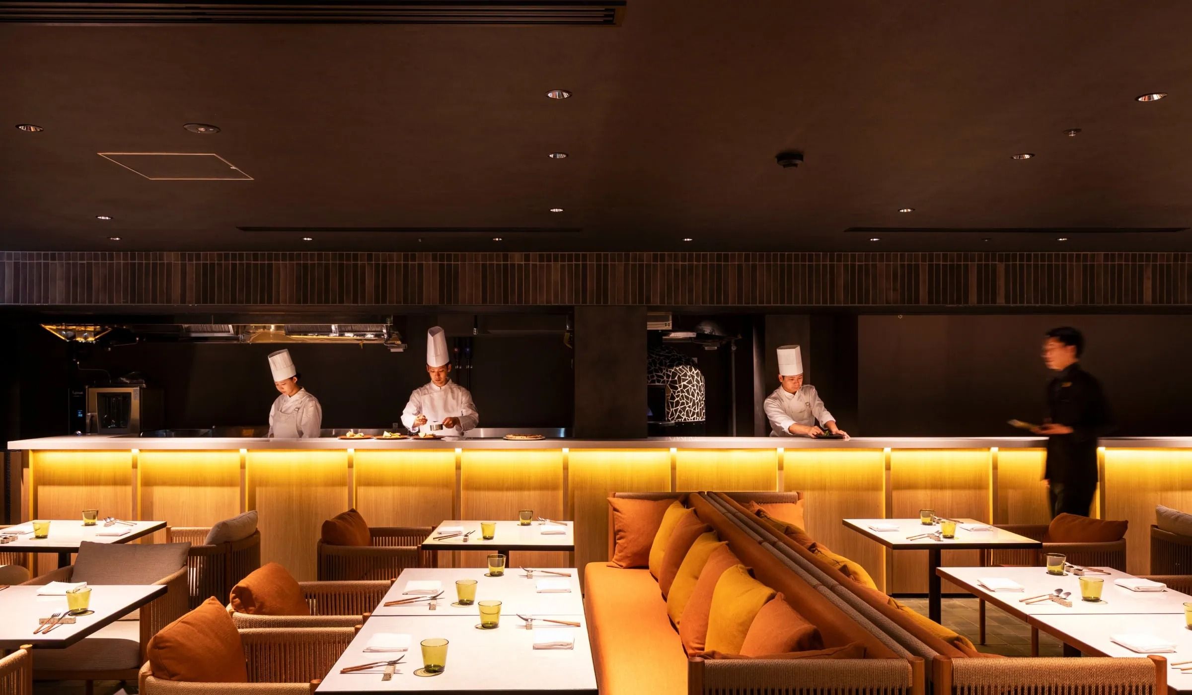 八芳園の3階に佇む「FUDO」は、石窯で仕上げる料理を中心に、和と洋が融合したメニューを楽しめるオールデイダイニングです。朝食からディナーまで、四季折々の素材を活かした料理を、ライブ感あふれるオープンキッチンとともにご堪能いただけます。カジュアルなひとときから大切な記念日まで、多彩なシーンを彩る空間で、心に残る美味しさをご体験ください。