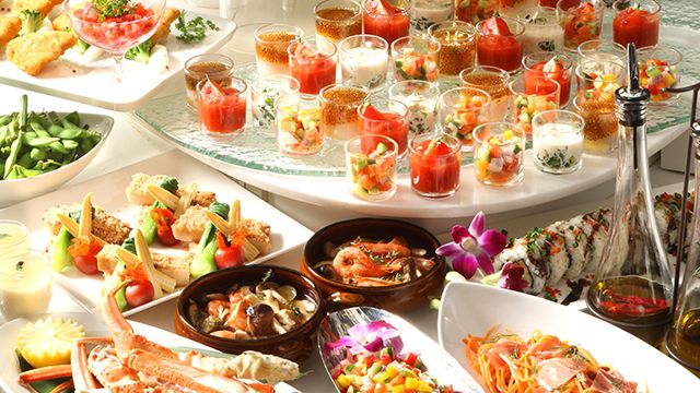 吹き抜けの高い天井が開放感とゆとりある時間を感じさせる店内には、ホテルのコンセプトカラー、ブラウンと赤の差し色がインテリアの所々にあしらわれ、落ち着いた空間を演出しています。ビュッフェ形式で提供されるのは、シェフコーナーでの雪国ならではの雪室保存技術でじっくりと柔らかく熟成させた“にいがた和牛”の「雪室熟成肉」ローストを含む、新潟県産食材を使った数十種類のメニューをご用意しております。季節ごとに変化するメニューをご家族揃ってお楽しみください。