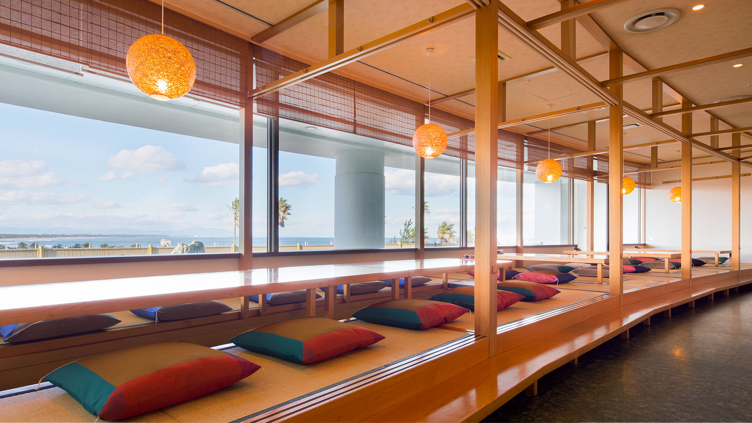 日向雫はANAホリデイ・イン リゾート宮崎館内の懐石料理をメインとした和食レストランです。広大な日向灘を望む店内には個室やテーブル席の他、掘りごたつの落ち着きあるお席をご用意しています。日向灘近海で捕れた新鮮な海の幸や旬の山の幸をふんだんに使用した、四季折々の懐石料理が自慢です。地元宮崎のブランド牛や本格焼酎なども取り揃えています。お土産には素材からこだわり抜いた宮崎の郷土料理「冷や汁」をご用意しておりますので、ご自宅でも日向雫の味をお楽しみ頂けます。