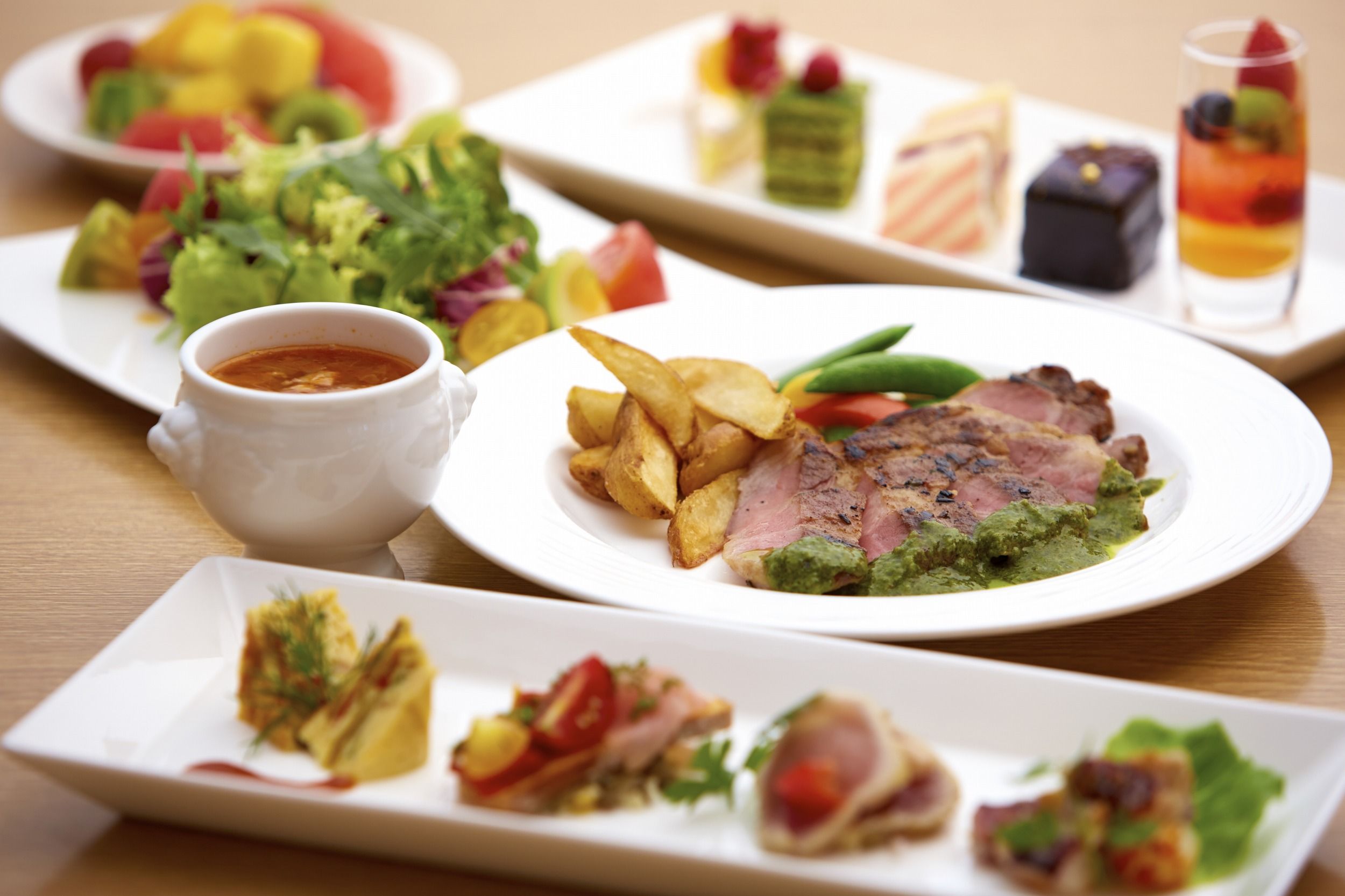 リゾート感あふれるホテルレストランで楽しめる創作フレンチのブッフェ