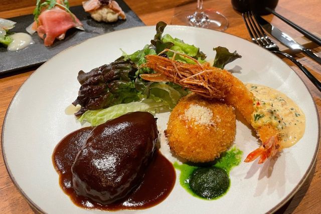 親しみのある「洋食」というジャンルを、全国各地から集めた厳選された食材をひと手間もふた手間も加えた専門的な調理法で、家庭では味わえない一品に仕上げた大人の洋食店です。 お料理に合う厳選された各国のワインとのマリアージュをお楽しみください。