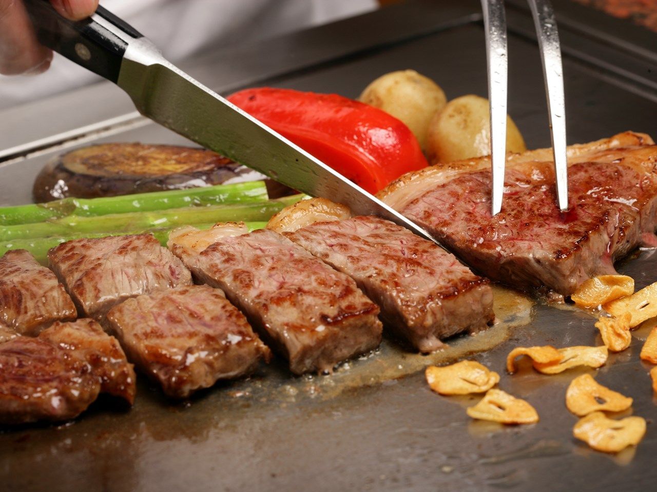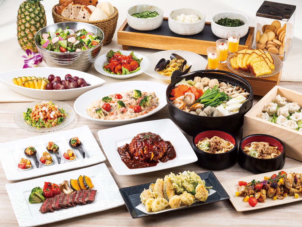 店内は、きらびやかなシャンデリアが特徴的で高級感のある空間。とても開放的なので優雅な時間を過ごしていただけます。ランチやディナーで提供されているビュッフェでは、ライブキッチンでは窯焼きのピザや牛ロースステーキをご用意しております。その他にも50種類以上のお料理を提供。飲み放題プランもございますので、どなたでもお楽しみいただけます。