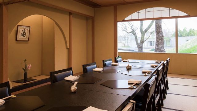 装飾に竹を取り入れた、落ち着ける和の空間。大きな窓から光が差し込む中で、熟練の料理人が手掛ける創作日本料理をお楽しみください。日本海で獲れた魚介や、地元農家から仕入れる野菜を、本来の美味しさを引き出すために、鮮度にこだわって調理いたします。旬の食材を積極的に使用しますので、季節ごとに異なる味わいをお楽しみいただけます。日本料理との相性が良い、地元石川の地酒もご用意していますので、お料理とともにご堪能ください。