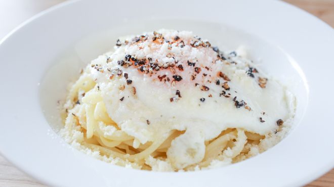 シンプルな内装の店内には、14人掛けの大きなテーブル。知らない人ともついつい話が弾む、アットホームな雰囲気のイタリアンレストランです。ガラス張りの店内はとても明るく、ガラス戸を大きく開け放てば解放感も抜群です。食材はイタリア産を中心に、オリーブオイルまで厳選して質の高いイタリア料理を提供しています。手打ちパスタや炭火焼肉はまさに絶品。