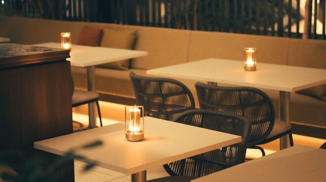 店内はボタニカルな雰囲気が広がる空間です。ランチからカフェ、ディナーまで、時間に合わせたおいしい料理を提供いたします。ランチは、アオリイカと菜の花のジェノベーゼやスパイシーラムカレー、オニオングラタンスープやフォカッチャなどのメニューが豊富です。カフェタイムには、ガラス張りのペストリーでパティシエが作るスイーツを提供。ディナーではチャイニーズチキンサラダや仔牛のカツレツなど、イタリアンをベースにした多国籍料理をご用意しています。