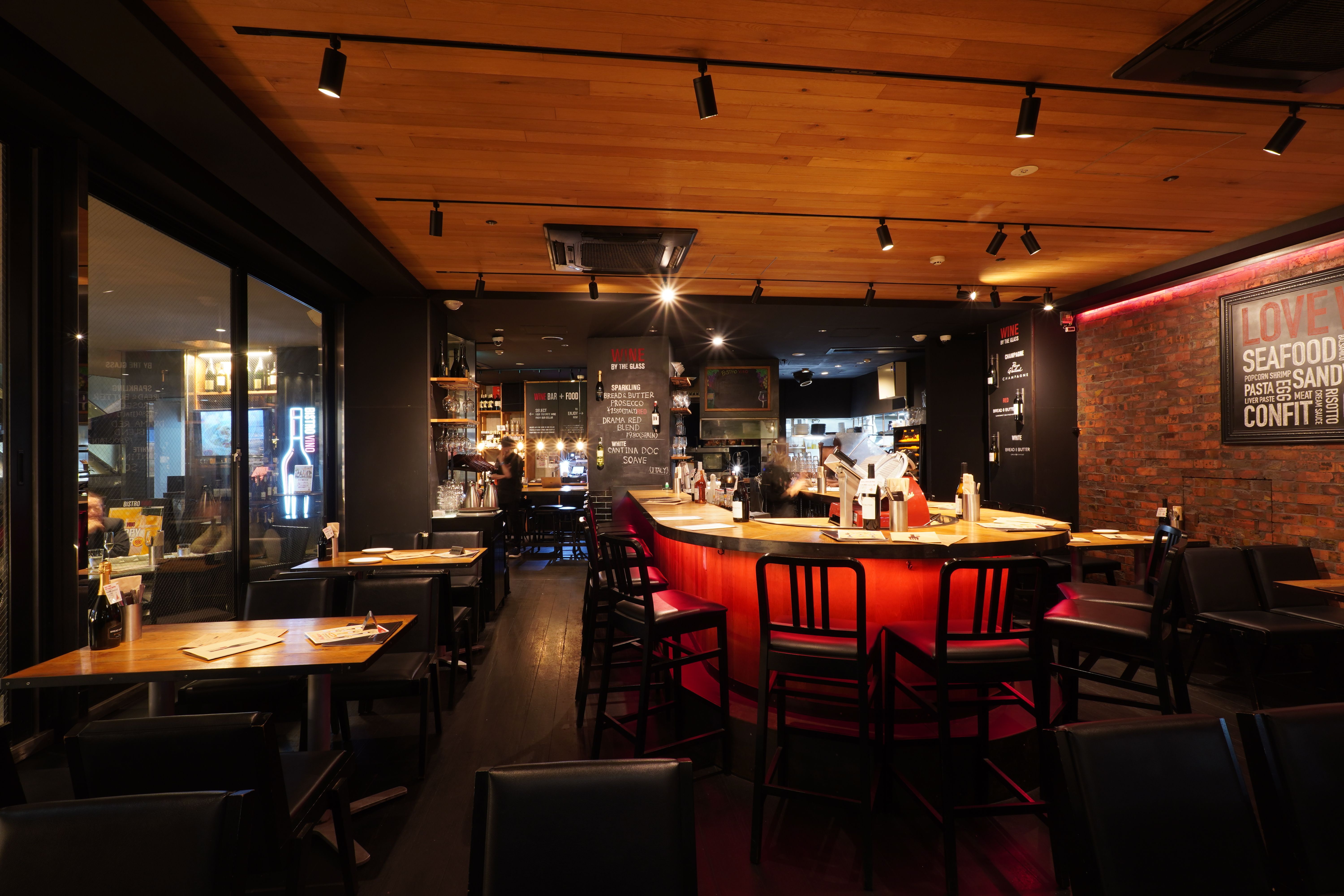 洗練されたカジュアルな雰囲気の中、 世界最高峰の産地からのワインをお楽しみください。 店内では100種類以上のワインをリーズナブルな価格で販売。 オープンキッチンからお届けする美味しい和食や世界各国の料理と共に店内でお召し上がりいただくのはもちろん、 ご自宅でもどうぞお楽しみください。 ワインを愛する全ての方へ、 BISTRO VINOで至福のひとときを お過ごしください。