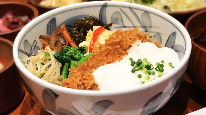 欅材などの無垢材をふんだんに使った店内は、木の温もり溢れる和モダンな雰囲気。毎日厳選した国内銘柄豚や旬の食材を、コーンサラダ油とごま油をブレンドしたこだわりの油で低温で丁寧に揚げています。定番のロースカツ定食やヒレカツ定食はもちろん、季節限定の揚げ物など豊富なメニューをご用意。カジュアルな和の空間でご家族ご友人と寛ぎながら、サクサクの揚げ物を心ゆくまで味わって下さい。