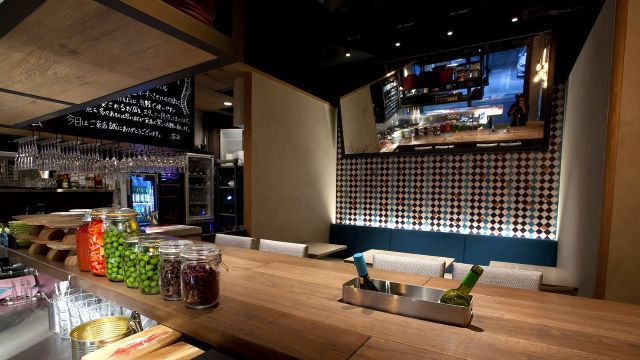 中目黒高架下で夜12時を過ぎてもオープンしている立ち飲みOKのカウンターバーです。外観はグレーを基調にした一軒家風、通りに面している部分は全面ガラスですので中の様子がわかりやすく気軽に入れます。店内は白木の大きなカウンターとオープンキッチンが中心に置かれ、モダンクラシックな印象のインテリアでまとめられています。カウンターキッチンに置かれたナイフやお皿、調味料の瓶などがとてもおしゃれで統一感があり、インテリアショップのような雰囲気を感じさせます。帰宅前に1杯飲みたい時におすすめです。