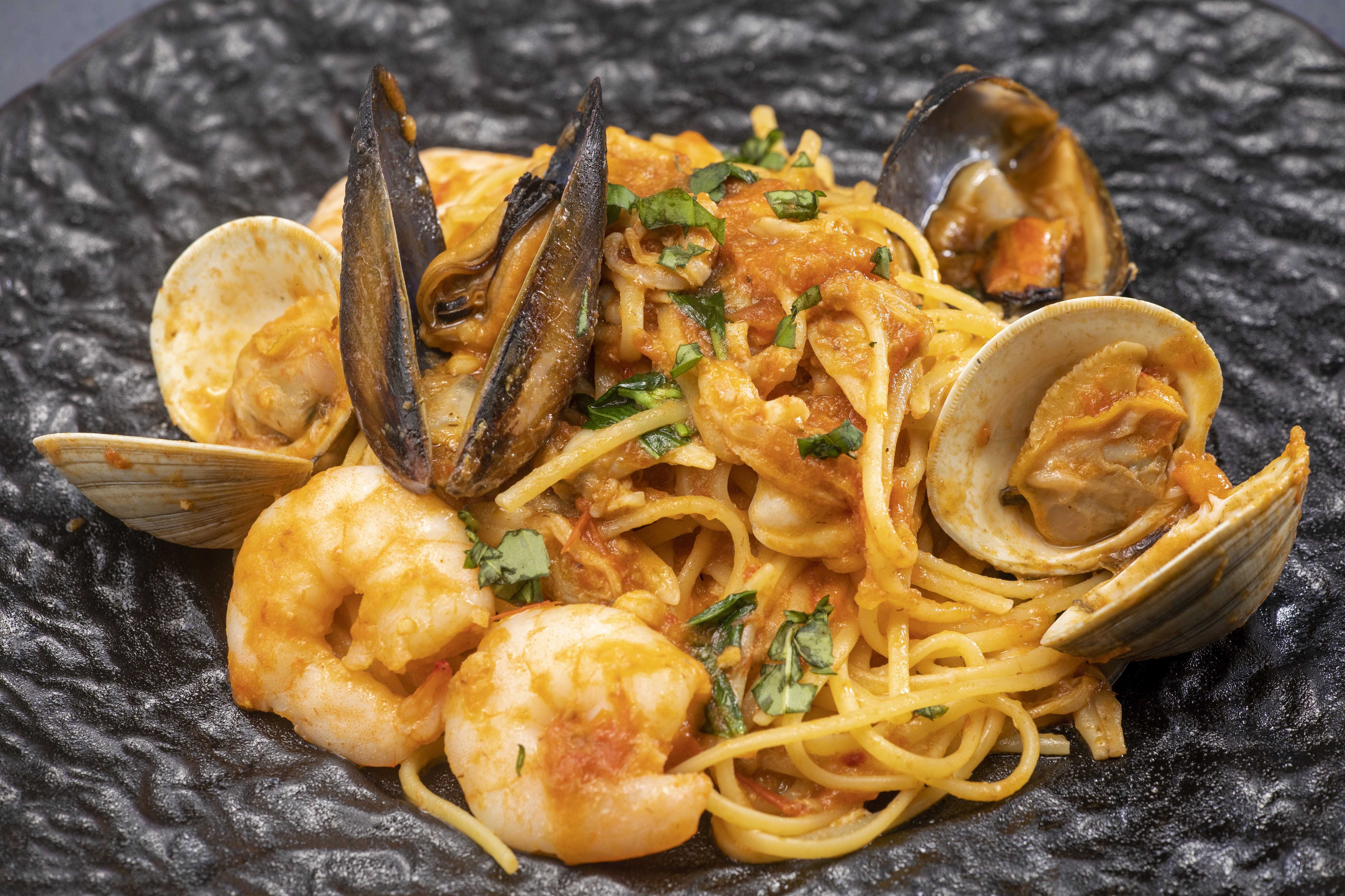 店内に入ると、明るくて開放感あふれるフロアが広がっています。近くを流れる運河の水辺と心地よい海風を感じながら、漁師街の料理と共にまるで海辺にいるような素敵なひと時が過ごせます。シェフ自ら農場や漁港に出向き仕入れた食材を取り扱っております。海の幸をふんだんに使用したシェフお手製パスタや旬の食材を使用したパエリア、鮮魚を使った魚料理の他、お肉は様々な和牛をご用意しております。お食事のあとは、自家製デザートと厳選された紅茶やコーヒーをお楽しみください。