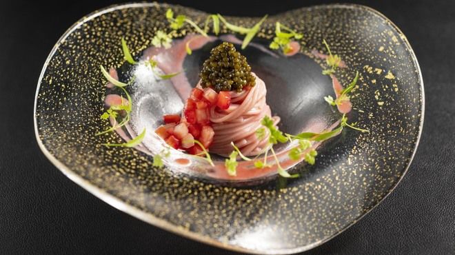 隠れ家のような外観を入るとそこにはモダンな空間が広がります。 そこでは、日本ならではの食材を使った華やかな料理とワインのマリアージュをお楽しみ頂けます。 御接待や、ご友人との会食、デートなど様々な用途で安心してお使い頂ける空間をご用意しております。