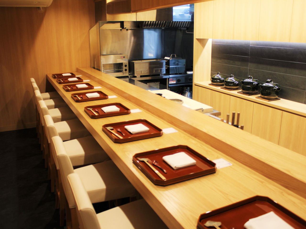 木のぬくもりが感じられる、落ち着いた空間で和食を味わっていただけます。老舗で培った和食の技を間近で見られるカウンター席や、ゆっくりと過ごせる個室があり、どちらも他のお客様と顔を合わせずご案内できます。春のタケノコや秋の松茸など、全国から取り寄せている旬の食材を使用。店主自ら厳選した日本酒やワインも揃えており、料理に合わせたマリアージュを楽しんでいただけます。