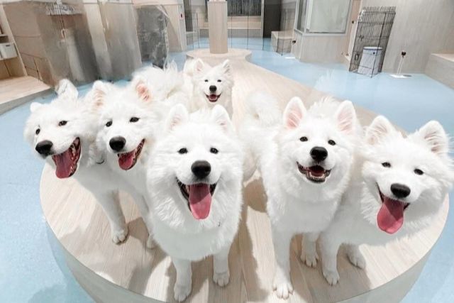 真っ白でもふもふなサモエドたちと、非日常体験を。