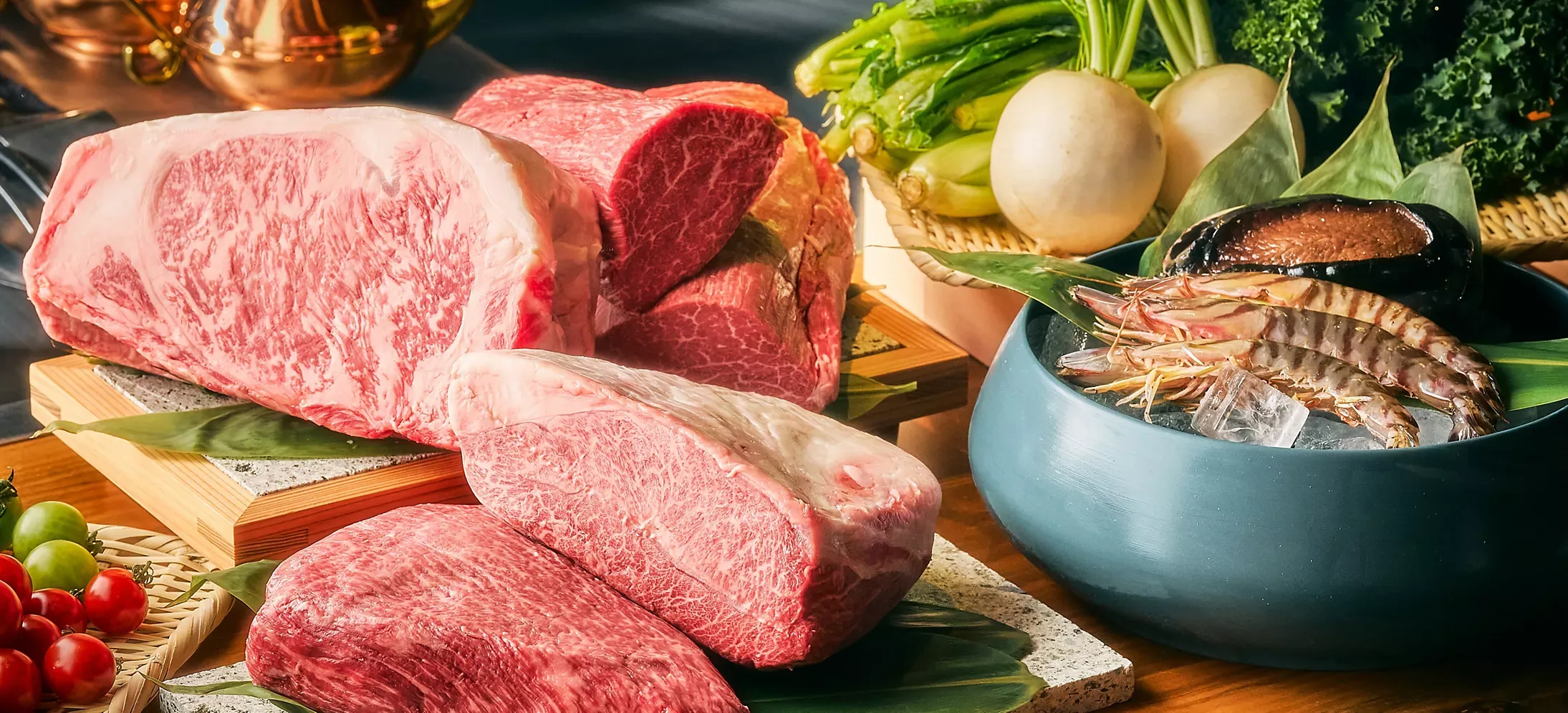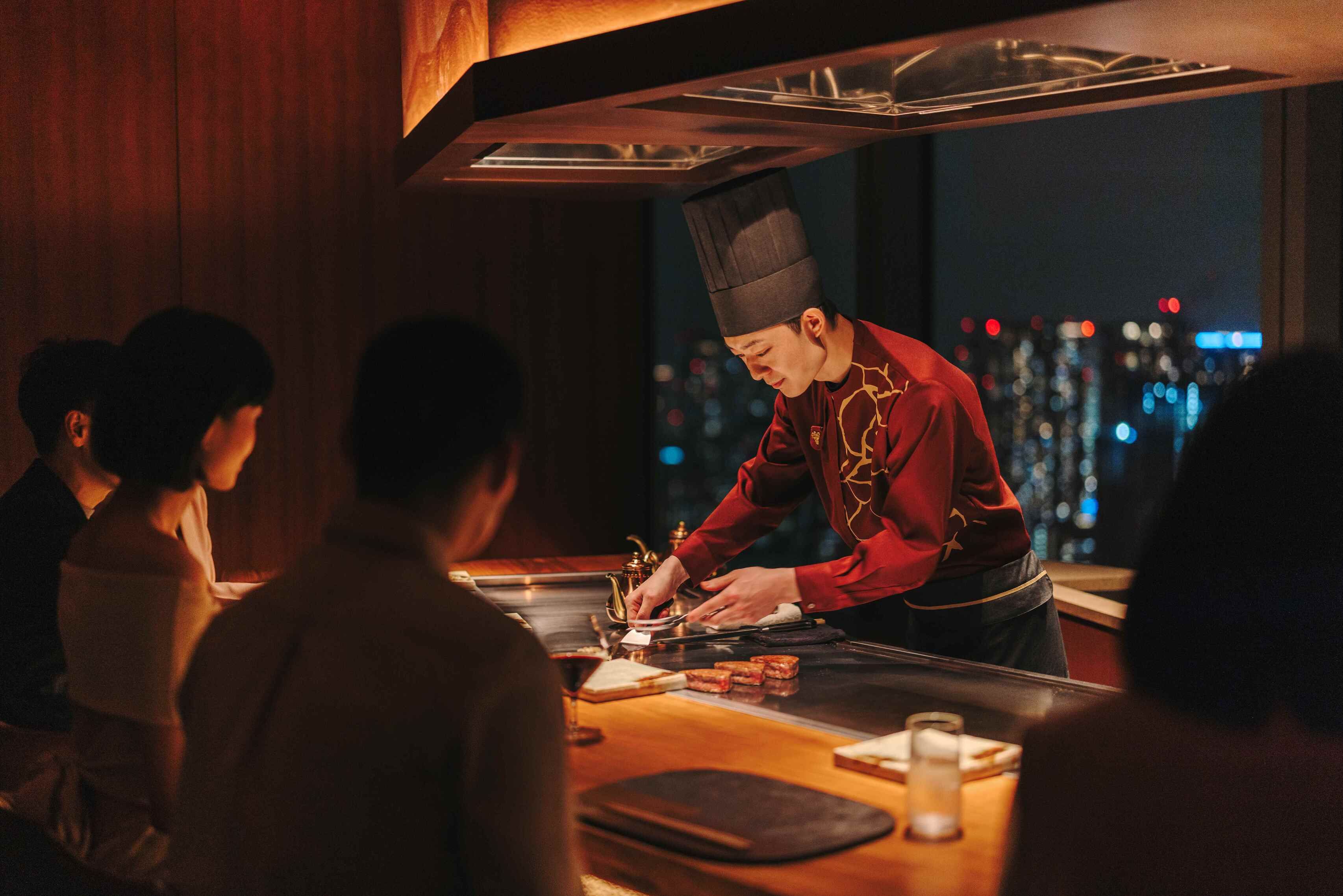 日本の伝統美を深く敬いながら、それを現代の感性と融合させたニューオーセンティックな美食体験をご提供します。日本各地から厳選された最高級和牛をはじめ、旬の海の幸やパルミジャーノが織りなす創造性豊かなお好み焼きなど、卓越した技と発想が生み出す逸品をご堪能ください。食後は隣接のラウンジへとご案内し、目の前で仕上げる趣向を凝らしたデザートが、至福の余韻を彩ります。焙じ茶の香ばしい香りが漂うなか、静かに響く伝統楽器の音色と東京湾の穏やかな景色が調和し、心安らぐ格別なひとときをお過ごしください。