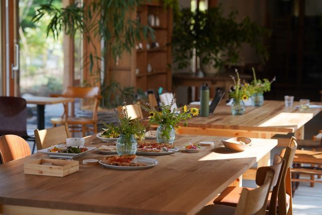 都会にいながら森の中にいるような空間で、旬の恵みを活かした料理を楽しめるレストランです。地元の生産者とつながり、湧水や季節の食材を大切にした一皿は、心と体にやさしい味わい。ランチやディナーはコース仕立てで、本格的ながら温かみのある食体験が魅力です。