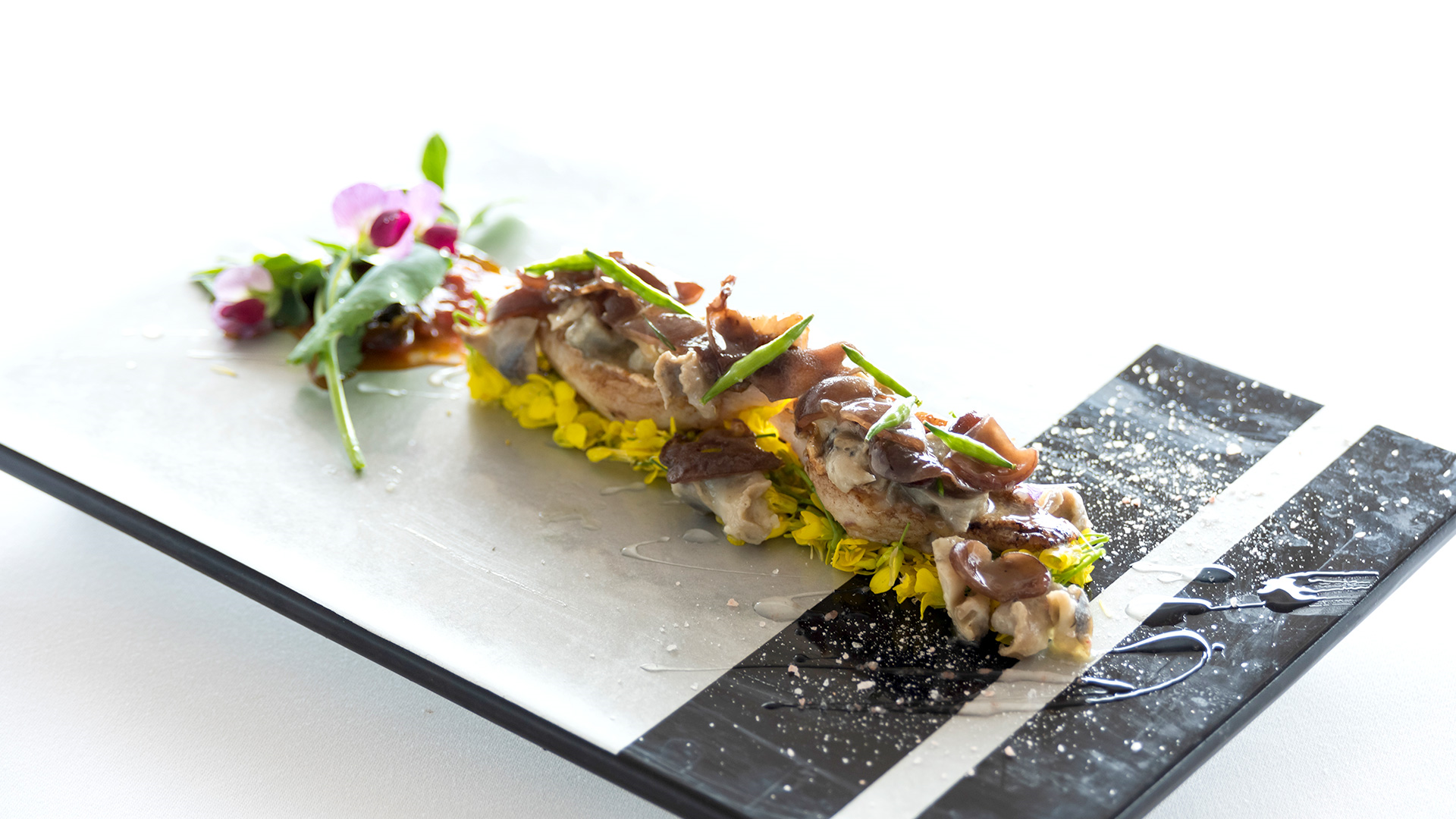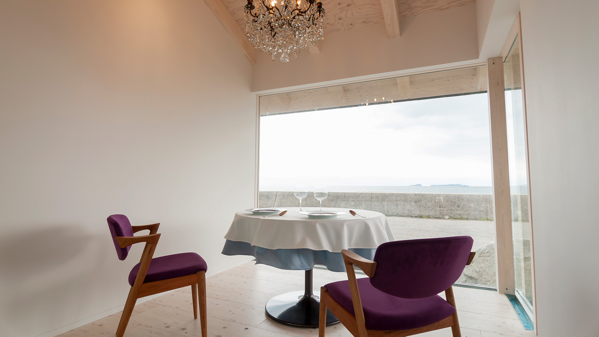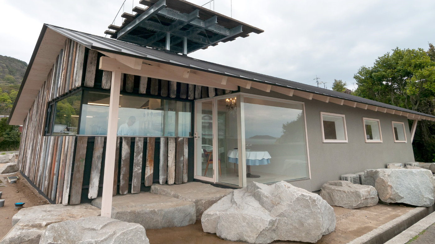 フェヌアは、しまなみ海道の大島に佇む海辺の静かなレストランです。風や波の音、鳥のさえずりを聞きながら、シェフが厳選した季節の食材を使ったフランス料理をお楽しみいただけます。隈研吾氏の設計による美しい空間で、土地の恵みと時間の流れを感じる特別なひとときをお過ごしください。