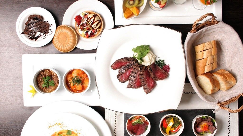 那須高原の豊かな自然に囲まれたホテルブッフェでは、新鮮な食材を使った料理をお楽しみいただけます。朝食には那須御養卵などの健康的な食材をふんだんに使用し、夕食にはオードブルやスープ、サラダ、デザートなど多彩なビュッフェメニューをご用意。広々とした空間と開放感あるテラスで、上質なおもてなしと共に心ゆくまでお食事をお楽しみください。