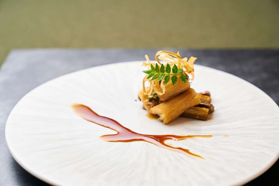 窓に広がる13階からの景色。晴れた日には箱根、駿河湾、雄大な富士山が望めます。夜になれば街の灯りがまた違った空間を演出。ゆったりとした時が流れる空間で、フレンチと和の技法を駆使したここでしか味わえない料理をお楽しみ頂けます。