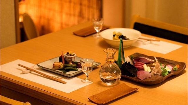 店内に足を踏み入れると、そこは落ち着いた雰囲気の和の空間。お一人様でも利用しやすいカウンター席、ゆっくりとお食事が楽しめる個室やテーブル席をご用意して、博多の海のもの、山のものを中心に季節の和食を提供しております。ドリンクには料理に合う日本酒など多数ございますので旬のお料理と共にご堪能下さい。