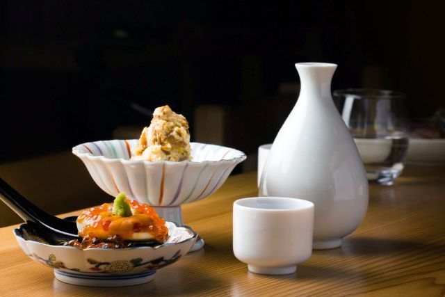 「日本酒食堂 吟乃灯」では、唎酒師と日本酒ソムリエの資格を持つ店主が厳選した日本全国の銘酒をお楽しみいただけます。季節によって変わる創作料理を小皿で少しずつ、日本酒とともに堪能できるのが魅力です。カウンター席で店主との会話を楽しめるのも特等席ならではの体験です。