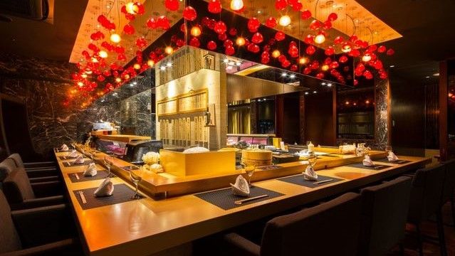 ほのかに明かりが灯る風雅なカウンターで、腕利きのシェフが厳選した食材をお客さまの目の前で調理いたします。当店は黒毛和牛の握りなど、鮮度の高い生肉を使った料理を自慢としておりますが、フィレやサーロインなどの炙りも好評でございます。雰囲気を一転させてカクテルを楽しむことが出来るバーカウンターもございますので、趣向を凝らしたスペシャルカクテルの数々を是非ご堪能ください。