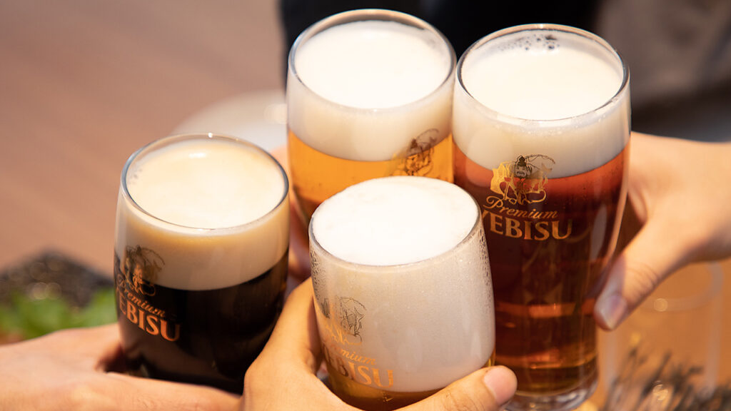 関西最大のYEBISU販売数のごきげんえびすで美味しいビールと限定焼酎を飲んで忘年会のちょっと贅沢に!