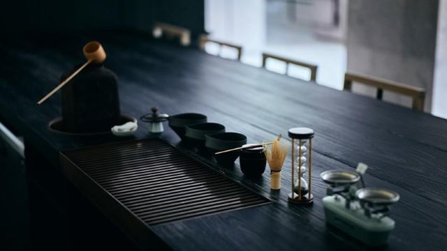 茶房では、奈良時代から続く茶の湯の精神を現代の洗練された様式でお楽しみいただけます。和紅茶梅酒や煎茶ジントニックなど、お茶のカクテルとともに、作家と共作した唯一無二の茶器で味わうことができます。花紫特製の和のアフタヌーンティーは、やさい寿司や季節のお菓子とともに、厳選された日本のお茶を心ゆくまでご堪能いただけます。