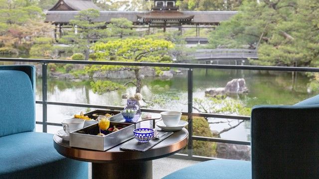日本の伝統技術が施された内装の宴会場は、開放的な窓に覆われています。窓から見える国指定名勝庭園「神苑」は、夕方になると綺麗にライトアップされ、幻想的な風景が広がります。上質なインテリアで彩るロビーラウンジは、一般開放をしていません。特別な空間でのティータイムを、満喫してください。 京都の歴史を感じる会席料理は、さまざまなプランをご用意。旬の素材を生かした、和のテイストをお楽しみください。