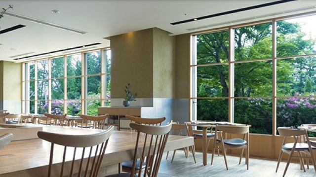 店内に入ると、落ち着いた和の空間が広がります。窓から見える庭園は、夜になるとライトアップされ、昼間とはまた違った雰囲気をお楽しみいただけます。旬の食材を使った日本料理を豊富にご用意。富士のワインビーフ溶岩焼懐石や山梨県産ワインビーフ網焼き、甲州地鶏網焼きといった地元の食材を用いたメニューをご堪能ください。店舗オリジナルの日本酒・こころぎを始め、和食に合うお酒も多数取り揃えています。