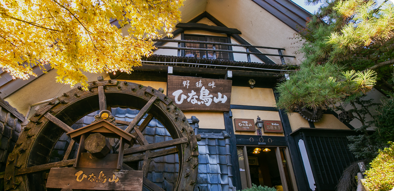 昔の庭園を彷彿とさせる「ひな鳥山」では、全席個室の掘りごたつでゆったりとした時間をお過ごしいただけます。舟でお料理を運び、囲炉裏を囲む趣のある空間で、福福とうふ鍋をはじめとする旬の食材を使用した料理を堪能できます。落ち着いた雰囲気の中でお祝いや宴会など、ぜひ大切な方々と特別なひとときをお過ごしください。