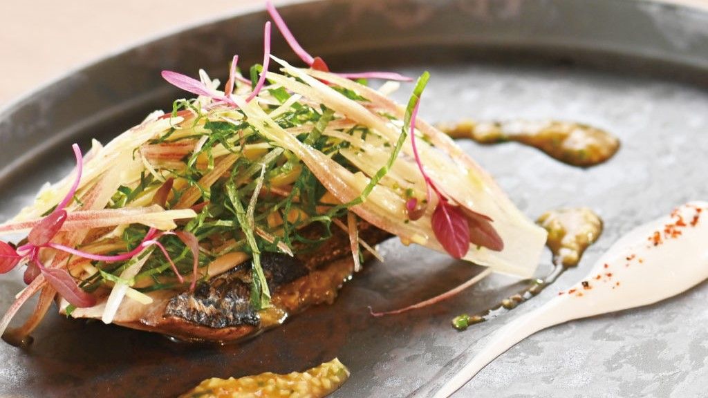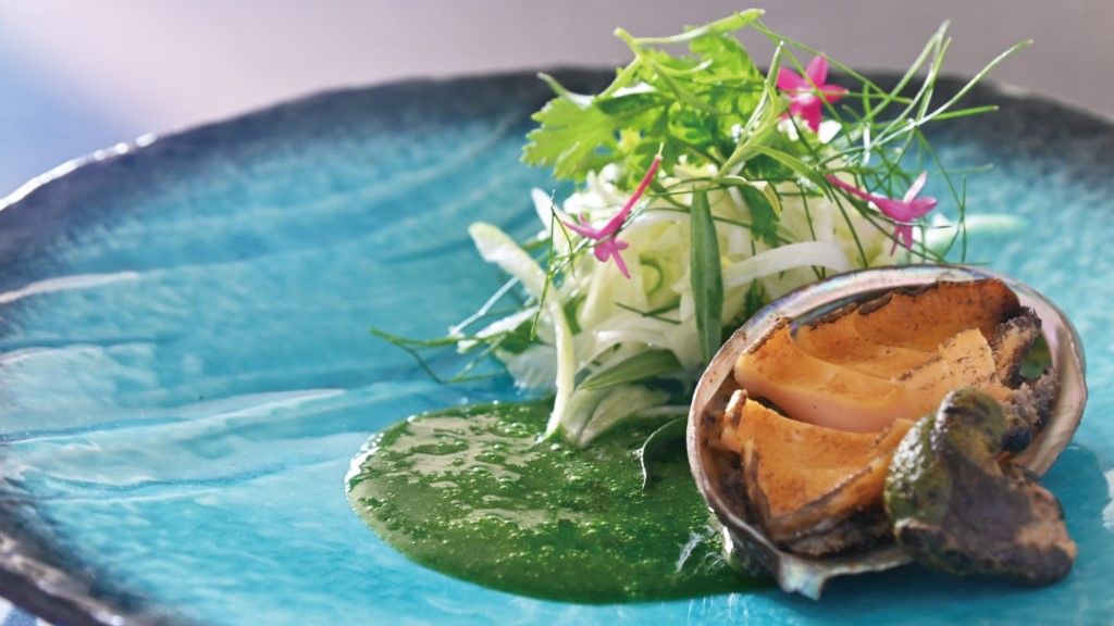 カウンターの目の前で調理する、フルコースやステーキなどのメニュー。「フレンチ」と「鉄板焼き」という、2つのコンセプトからお選びいただけます。そのコンセプトに合わせた2通りのカウンター席がございますが、どちらもシンプルな内装。その中に、フレンチは木、鉄板は石と、それぞれ材質の異なるカウンターを設置しているだけです。そのため、目の前のひと皿に、しっかり集中していただけます。種類豊富なワインはもちろん、日本酒も取り揃えておりますので、合わせてお楽しみください。