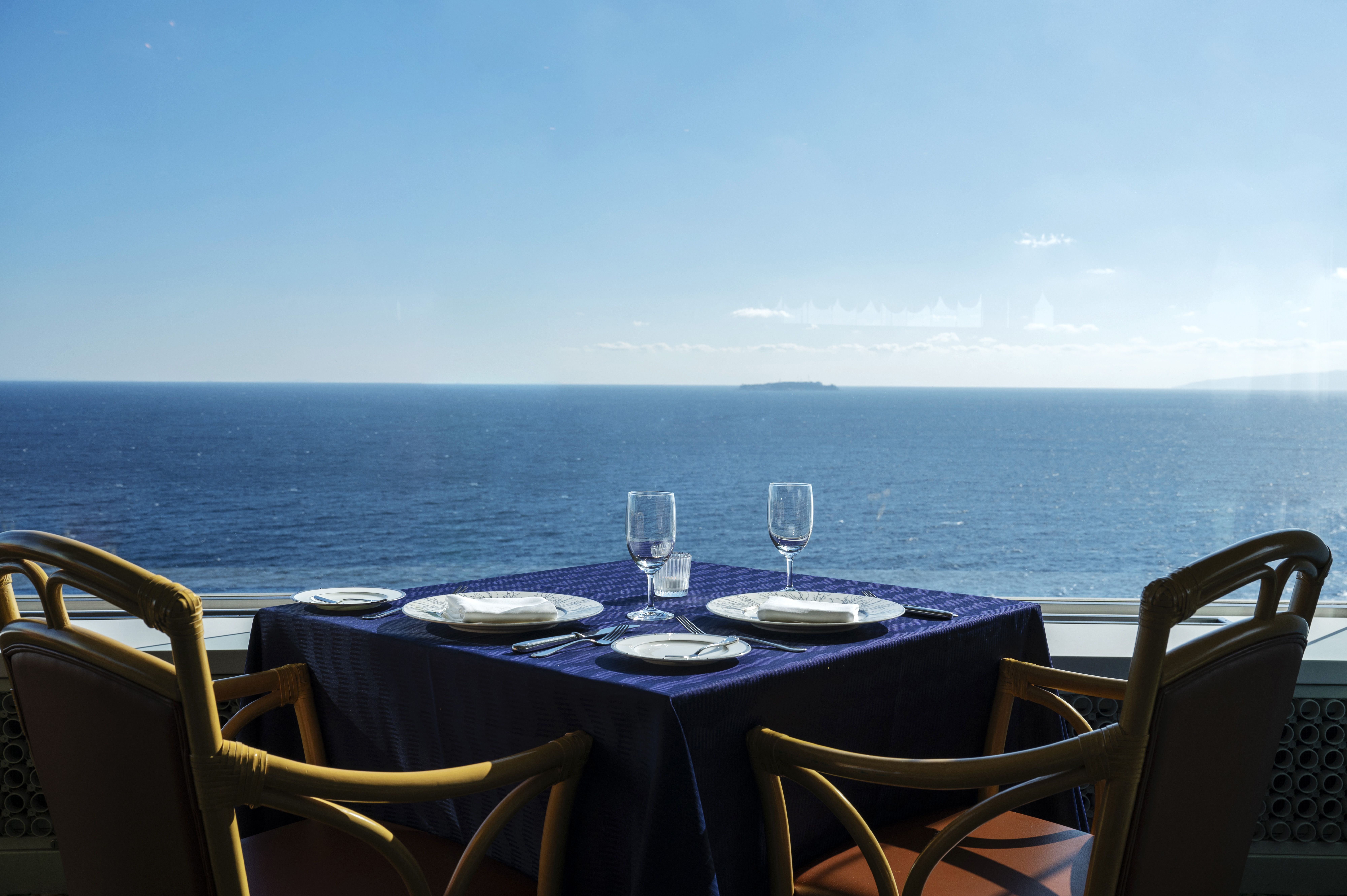 店内に入ると、ガラス張りの開放的な空間が広がります。ガラス越しのきれいな海を眺めながら、ゆったりした食事の時間をお楽しみください。地元の旬の食材を使用し、素材に拘って丁寧に作り上げた料理の数々。カジュアルでありつつ、モダンな盛り付けを意識したフレンチをご堪能いただけます。料理に合わせて、様々な種類のワインも提供しています。