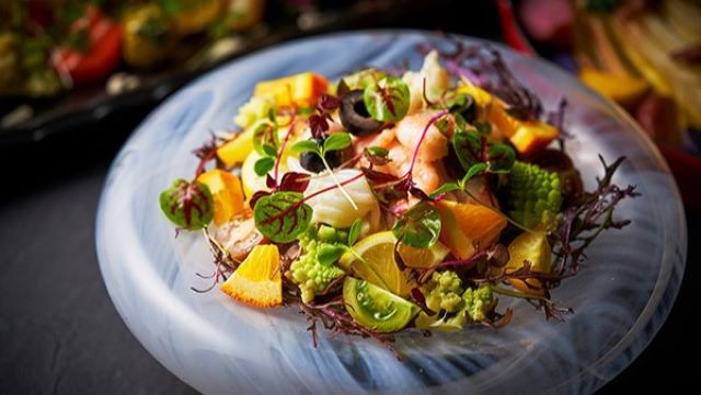 メインダイニング錦では、昼は一般の方もご利用いただけるランチ営業を行っています。ランチはハーフビュッフェスタイルで、和洋バリエーションに富んだ自慢のメインディッシュに、サラダ・オードブル・デザートのビュッフェが付いたお得なセットです。メインディッシュは、オリジナルハンバーグやマグロ丼など、いくつもの種類の中からお好みのものをチョイスしていだだけます。地元食材や料理の彩りなど、細部にまでこだわっております。