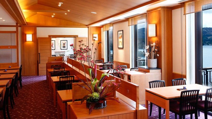 落ち着きのある日本料理レストラン「つつじの茶屋」は、芦ノ湖と箱根の山々を眺めながら、彩り豊かな季節の食材とその持ち味を活かし、盛り付けも美しい懐石料理をご提供しております。 「つつじの茶屋」という名は、かつて岩崎男爵の別邸時代に、男爵がこの地に設けた茶室の名前からとられたもの。山のホテルが守り続けてきた日本伝統の味は、まさにクラシカルホテルならではの心配りとおもてなしをするためのお料理です。