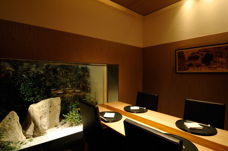当店は「伝統技法を忠実に押さえた調理、あたたかみ、ぬくもりのある料理づくり」を信条とした、四季折々の旬の食材を使った本格的な日本料理のお店です。大きな窓に広がる中庭の景色を楽しみながら、産地直送の魚介など厳選素材でつくられた四季折々の日本料理をご堪能下さい。
