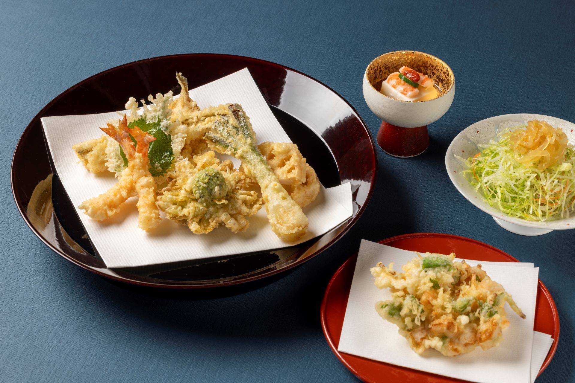 ホテルオークラのロビー設計に携わった谷口吉生氏の内装は、窓の外にある日本庭園と一体感のあるデザインです。割烹、天ぷら、鮨ごとにカウンターとテーブルが分かれつつも、利用シーンに応じてさまざまな日本料理を味わえます。経験豊富な板前が、旬で高品質な素材をお客様の目の前で調理するスタイルです。豊富な日本酒とともに、前菜、お造り、焼き物など多彩な日本料理をどうぞお愉しみください。