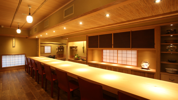 暖簾をくぐると店内は凜とした柔らかな雰囲気漂う空間です。1階の個室は季節を映す坪庭を眺めながら、落ち着いた和の広間がある2階では大切な方や親しい方と和やかな一時を過ごせます。カウンター席は満足度の高い大人の時間が流れる特別な空間です。料理人の包丁さばきを間近に見ながら料理をご堪能いただけます。 越前の新鮮な魚介類を中心に、全国から厳選した旬の食材で仕上げたここでしか食べられない味わいを提供いたします。器に盛られた四季折々の逸品を地酒や銘酒と一緒に五感でお楽しみください。