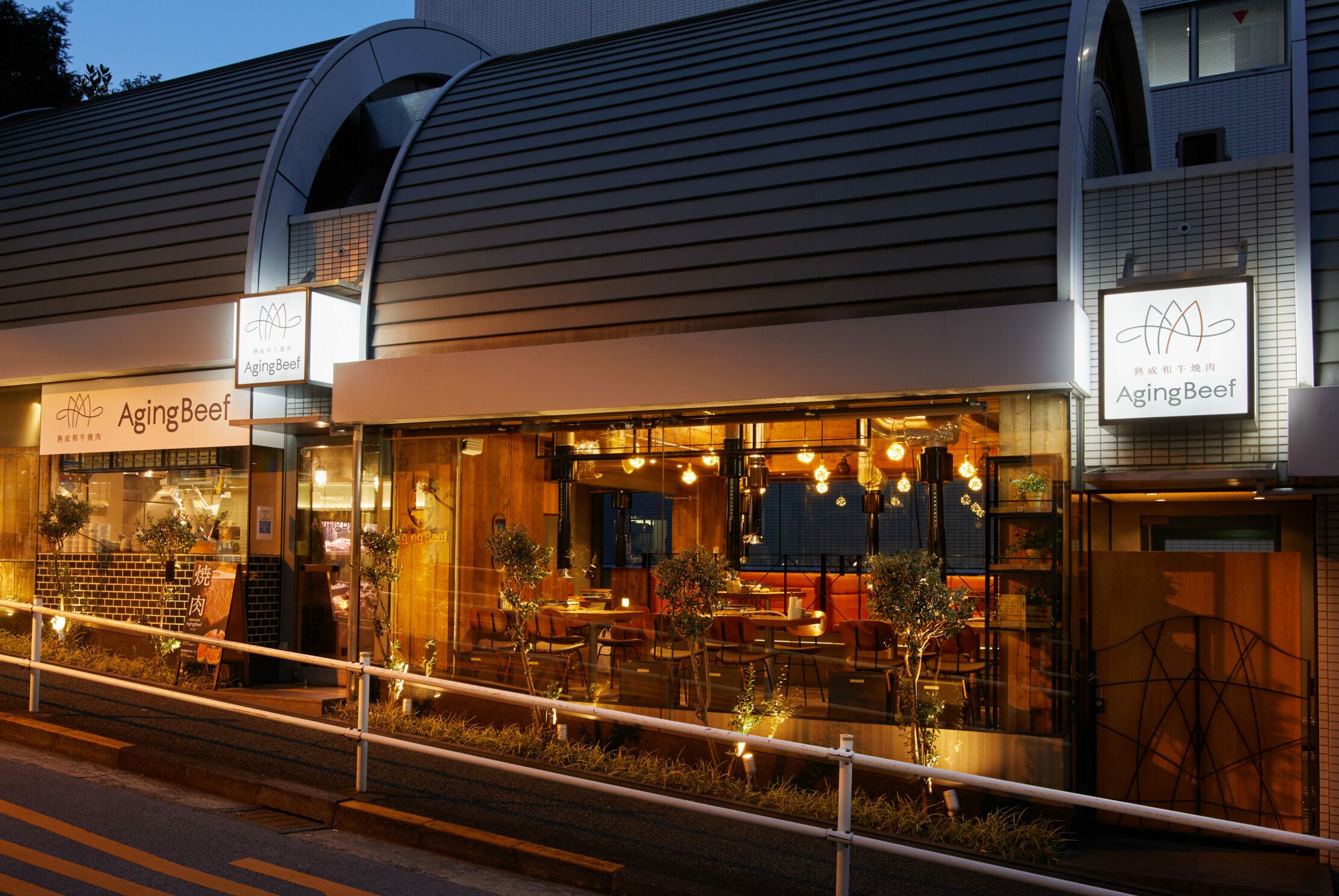 熟成肉ステーキ専門店「グリルドエイジング・ビーフ飯田橋」から業態変更し『熟成黒毛和牛焼肉 エイジング ・ ビーフ』に。各路線の飯田橋駅から徒歩 3 分~5分のアクセスしやすい好立地で 熟成肉専門店としての進化を目指す店舗 内装はウッディなインダストリアルで、こだわりある大人の off をイメージしています。