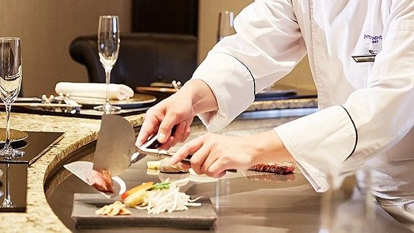 客室からレインボーブリッジを一望できる、有名ホテルに店舗を構える鉄板焼「匠」。「ヘルシー(健康)、ビューティ(美しさ)、フレッシュ(新鮮)をもとにオリーブオイルで調理する」をコンセプトとした健康志向な鉄板焼きです。ジュレタイプのタレは、美肌効果があるコラーゲンを含むことでプルプルの触感が楽しめます。食後には隣接する最新インテリアが配置されたラウンジへ出来立てのスイーツをお届けします。