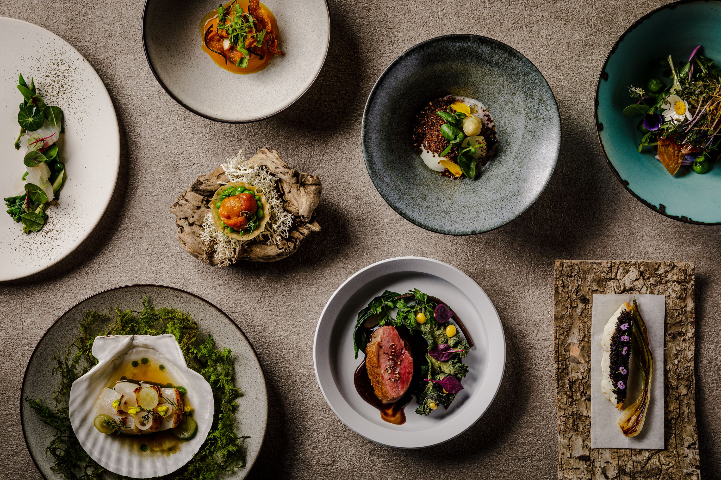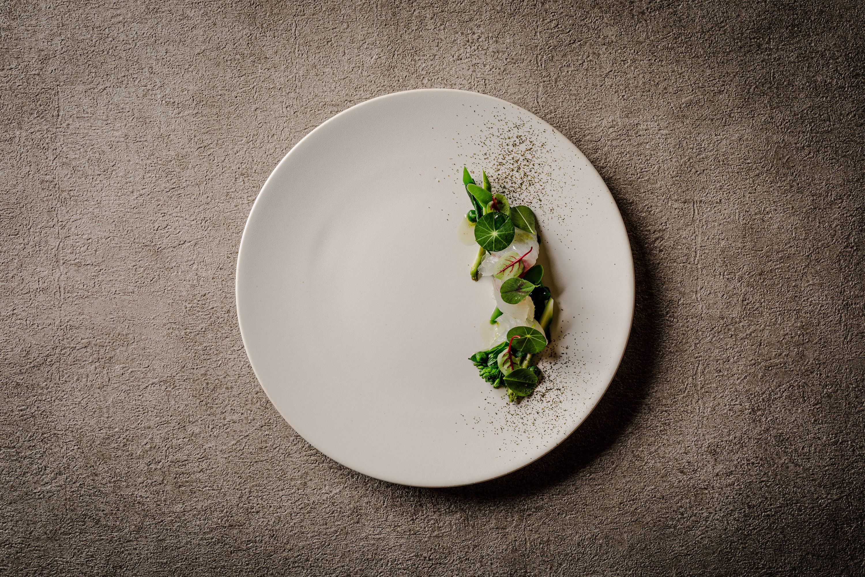 ベリーウッドの一枚板が映えるカウンターが中心となった、ナチュラルで温かみの宿る店内。 こだわりのある食材に、遊び心やオリジナル性の高い食器や家具、装画など。 料理は、全13〜14品で構成されるコースを、お鮨屋さんのように少量ずつテンポよく。 すべてをMADE IN JAPANにこだわり抜いたレストランが、ようやくでき上がりました。