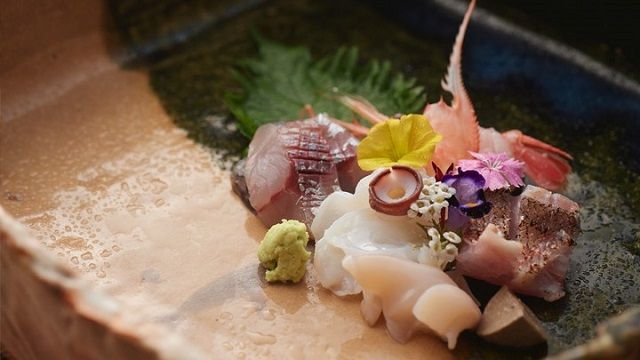 カウンターでは板場の臨場感を感じられるように、日本庭園を眺めることができる個室では大切な方との語らいを楽しんでいただけるように、いずれも豊かなひと時をお過ごしいただけるよう洗練された空間を演出しています。「地元漁師から買いつけた朝とれの鮮魚や、手間ひまかけて育てられた季節の野菜」などの富山の食材を惜しみなく使ったさまざまの品を、おまかせのコース料理にして昼も夜も提供しています。