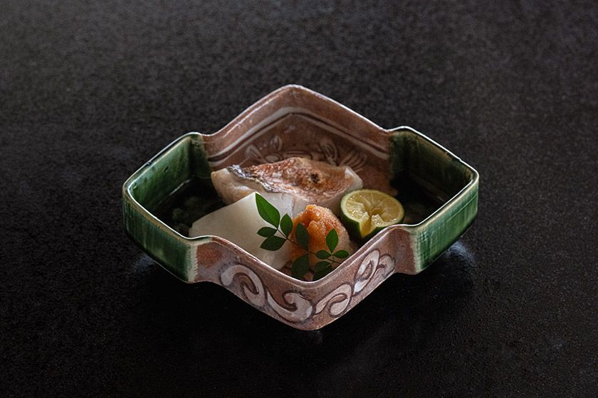 『料理は出汁に始まり、出汁に終わる』をモットーに、華やかで四季の趣を感じる一皿一皿を、素材の持ち味を生かして丁寧に仕上げます。 和食の枠にとらわれず、フレンチ、イタリアン、中国料理の技法も巧みに取り入れながら、味わいの奥行きと多様さを楽しめる料理をお届けします。