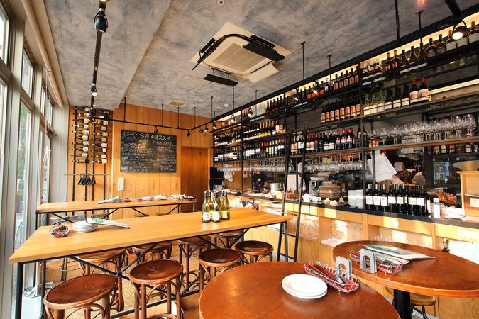 新橋では珍しいテラス席も用意された開放的な空間はまるで地中海のバルのよう。世界各国 100 種以上のワインを美味しい料理と楽しめます。魚介をふんだんに使ったパエリア、アンチョビの風味がたまらないマッシュルームのアンチョビオイル焼きや、お肉やお魚を熱々のフライパンでお出しする特別メニュー「今夜のフライパン」など、ワインをより一層引き立てる多彩なメニューを用意しております。