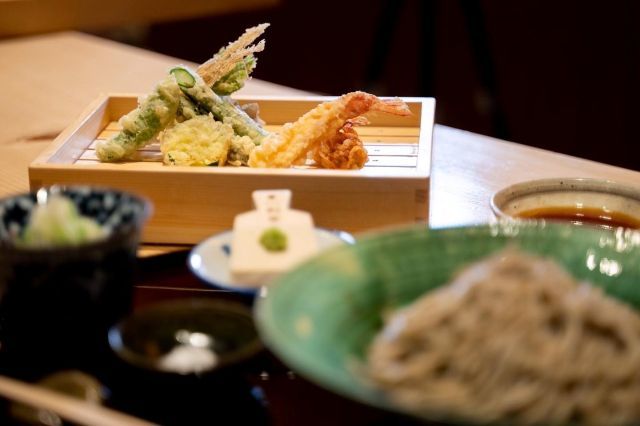 四十年の技術を持つ職人が、香りと粘りが強い在来種「玄そば」を使用した粗挽き蕎麦を提供します。全国から厳選した日本酒と共に味わう「そば飲み」が楽しめます。天ぷらや穴子の有馬煮、焼き味噌などの一品料理も絶品で、和の落ち着いた空間で心ゆくまでお愉しみください。