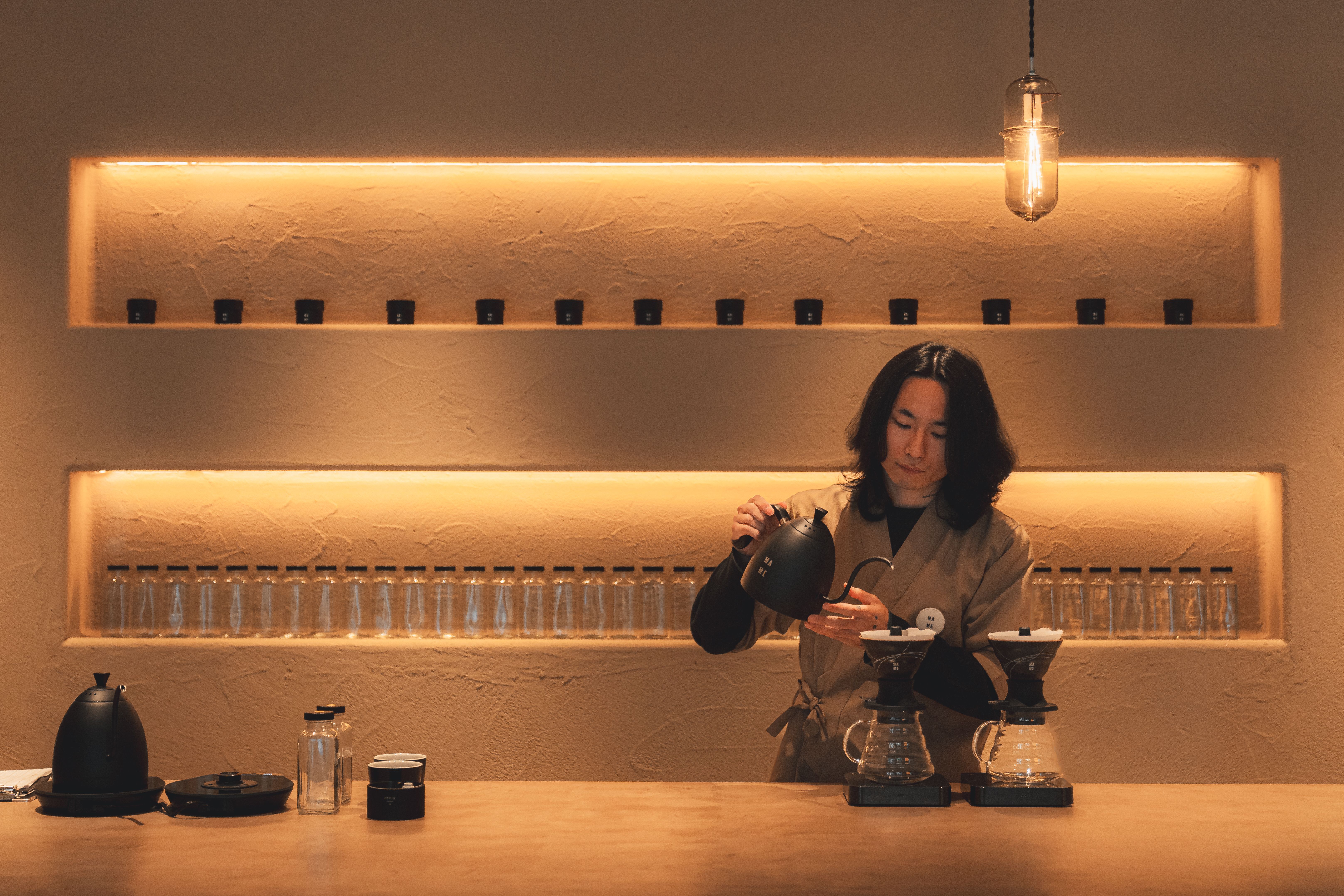 緑に囲まれた近代的な専門店の集まる神谷町に、コーヒーを愉しむ場所としてKURO MAMEが誕生しました。メニューはなく、その日の気分で最高の一杯が飲める席か、メニューの中からカジュアルに選んで街歩きのお供として飲むテイクアウトか。スイスに拠点を置くMAMEの焙煎豆を飲み頃になったタイミングで提供します。