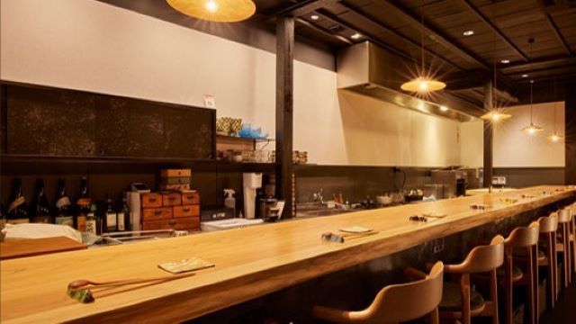 古民家ならではの落ち着いた空間で、カウンターで調理風景を眺めながら食するひと時。料理を彩る器にもこだわり、四季折々の美しさも堪能いただけます。京野菜を中心にハモや鮎など京都ならではの旬の食材を活かし、伝統的な日本料理の技法に洋食の要素取り入れ、独自の感性で作り上げた割烹料理をご用意。独創的な料理によく合う日本酒を全国各地から取り寄せています。その他ワインも豊富に取り揃えていますので、お料理とともにお楽しみください。