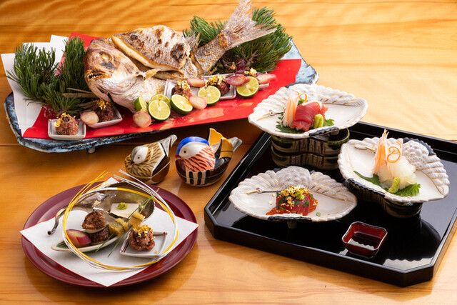 日本料理や寿司、炭火焼料理などをご提供しています。コース料理の他にお気軽に召し上がっていただける一品料理を多彩に取り揃え、お顔合わせ、お食い初め、法要後のご利用等、ご家族やで少人数のご会食やご歓談など様々な用途にご利用いただけます。