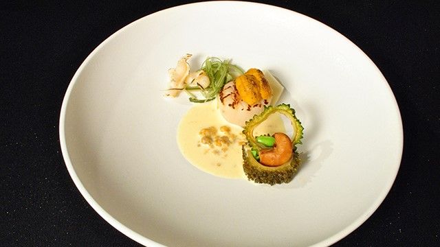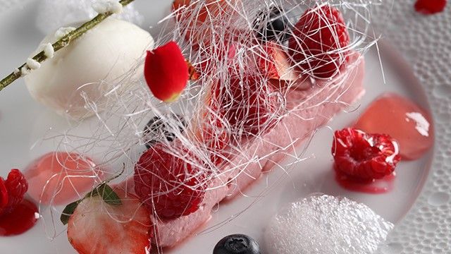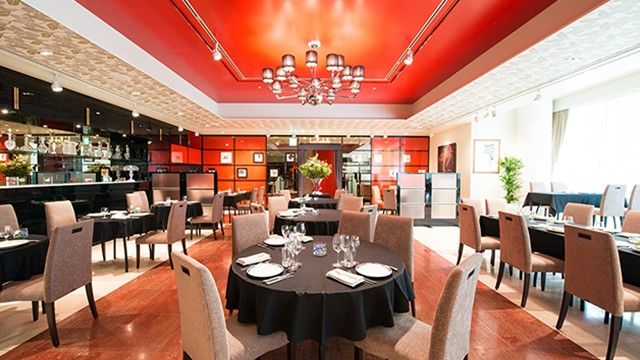 ダイニングは、赤と黒を基調とした和モダンの空間。柱など視界を遮るものがないため全席を見渡すことができ、レストランウェディングにも最適です。テラスは緑に囲まれ、開放感があります。 料理は本場フランスの食材だけでなく、「福地鶏」「敦賀の鮮魚」「山形牛」などの旬の素材を一流シェフが調理します。ワインは、フランス産のシャンパーニュ、白ワイン、赤ワインなど品ぞろえが豊富です。